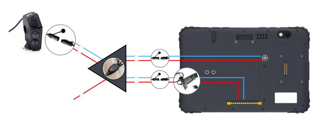 - Incluye pines de soporte para carga y conector M12 en el panel posterior impermeable (se pueden usar ambos al mismo tiempo).